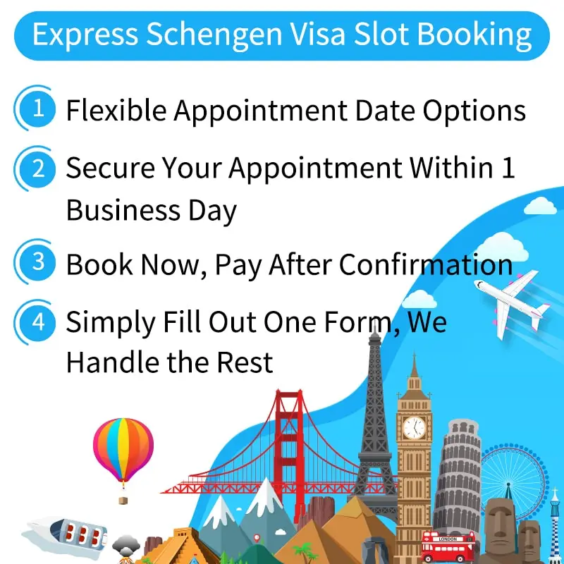 The appointment booking varies based on the type of visa and country, rangeing from 1 day to more than 1 week.